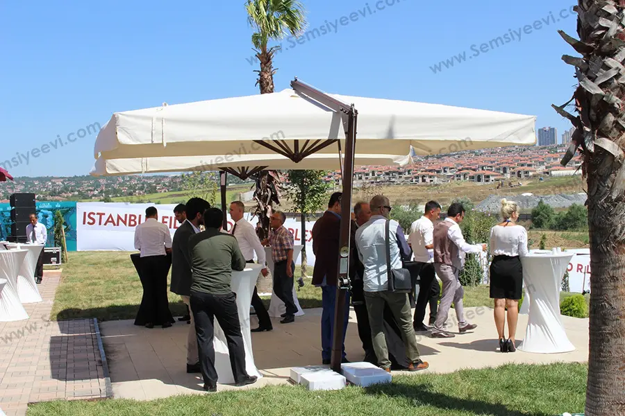 İster ikili, ister orta boy veya isterseniz büyük bahçe şemsiyesi olsun firmamız üzerinden rahat bir şekilde ulaşabilirsiniz. Bahçelerinize ve dekore etmiş olduğunuz ortamlara uyum sağlayabilecek değişik renk tonlarına sahip bahçe şemsiyelerimiz, tamamen sizlerin en iyi şekilde hava şartlarından korunabilmemiz adına düşünülerek tasarlanan şemsiye türleridir. Firmamız bu konu üzerinde oldukça uzun zamandır hizmet vermesinin yanı sıra, müşterilerimizin istekleri doğrultusunda en uygun şemsiyeleri aktararak alanında öncü firmalar arasında yer almaktadır. Amacımız sadece sizleri ilkbahar ve yaz aylarından güneş ışınlarına karşı korunmanızı değil, 4 mevsim üzerinde uzun ömürlü ve oluşabilecek darbelere karşı dayanıklı yapısıyla sizlere güvenli bir ortamı sunabilmeyi amaçlamıştır.