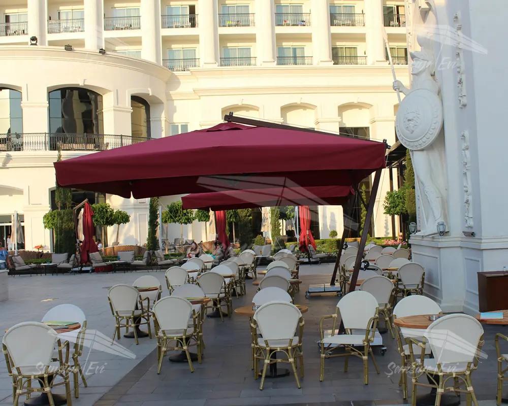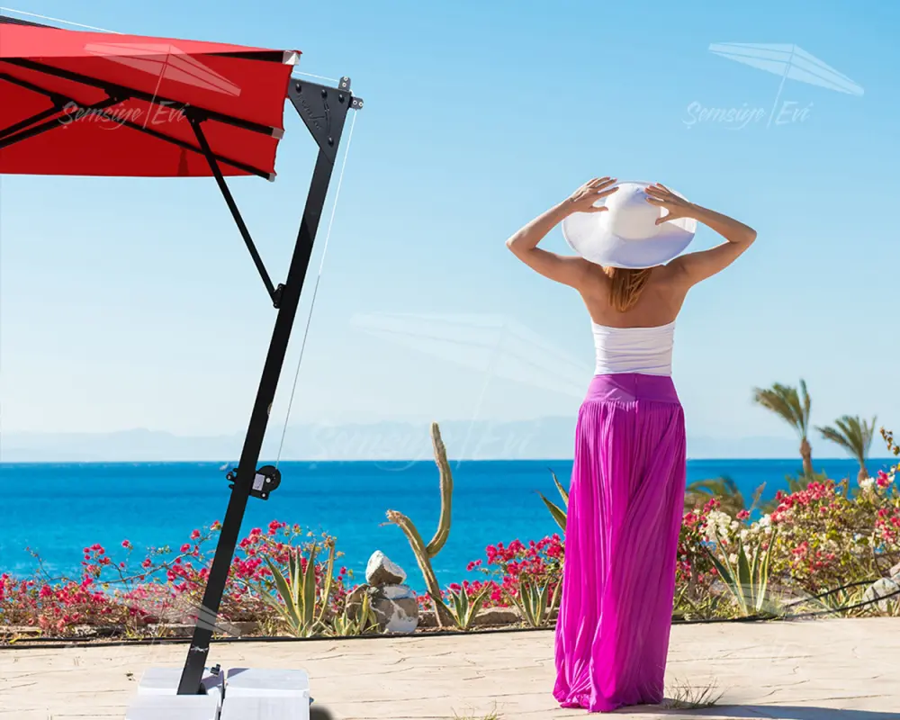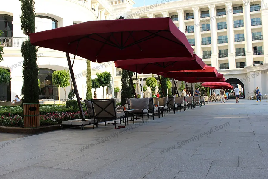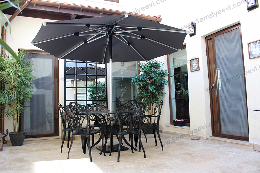 Tabi ki de ortak olarak bahçe şemsiyesi diye adlandırılmış olsalar bile aslında büyük boy şemsiyelerimizi evinizin terası veya balkonunda da gönül rahatlığıyla kullanabilirsiniz.