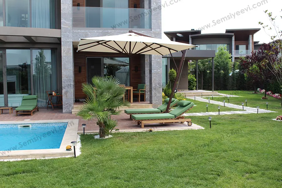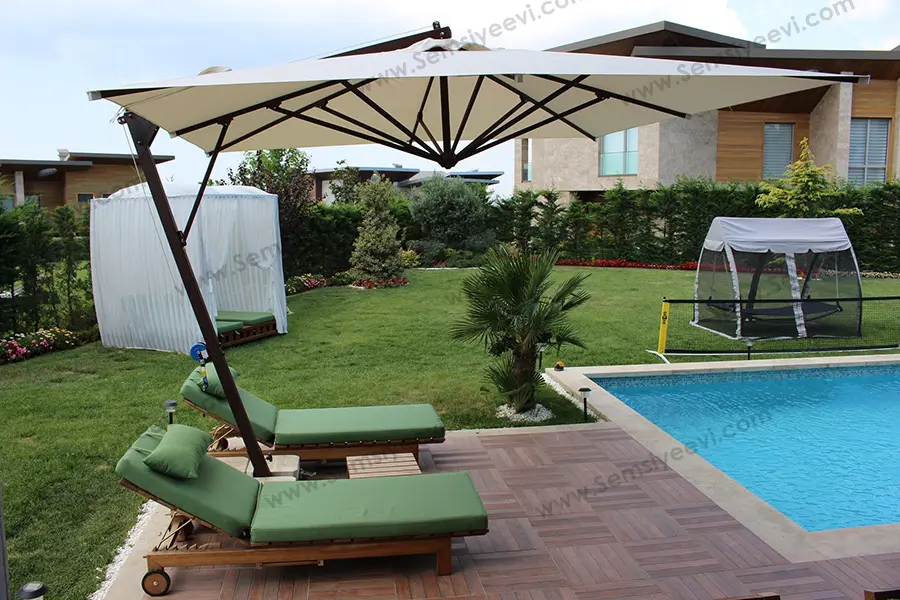 Büyük şehirler üzerinde veya apartman dairelerinde yaşayanların en büyük sıkıntısı şüphesiz doğaya karşı uzaklaşmış olduğu ve her zaman bahçeli bir konak evlerine karşı zaafı olduğunu anlayabiliriz. Bir bahçeyi güzel göstermek için bazı bir takım ihtiyaçlara gereksinim duyulmaktadır. Bu gibi durumları gerekli dekorasyon araçları ile dizayn ederek tamamlamanız mümkündür. Ama öyle bir konu vardır ki sizleri 4 mevsim üzerinde yeri geldiğinde koruyabilecek, hem dayanıklı hem de nahoş yapıda bir bahçe şemsiyesiyle tüm kombinleri tamamlayarak bahçenizin daha estetik bir hale gelmesini sağlayabilirsiniz.