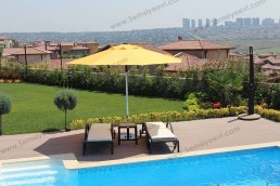 Sıcak yaz günlerinde kendi evinizin bahçesinde huzurlu ve keyifli dakikalar geçirebilmeniz için kullanabileceğiniz şemsiyelerimiz ile, hafif yağan yağmurlar da bahçe keyfinizin bozulmasını sebep vermeyecektir. Hafif yağan yağmur, ılık hava ve toprak kokusuyla birleşince oluşacak ortamı evinizin huzurunda yaşamanın keyfi tabiki de tarif edilemez. Tüm bunları düşününce önemsiz bir aksesuar olarak gözüken şemsiyelerin ne kadar önemli bir aksesuar olduğu ortaya çıkmaktadır.