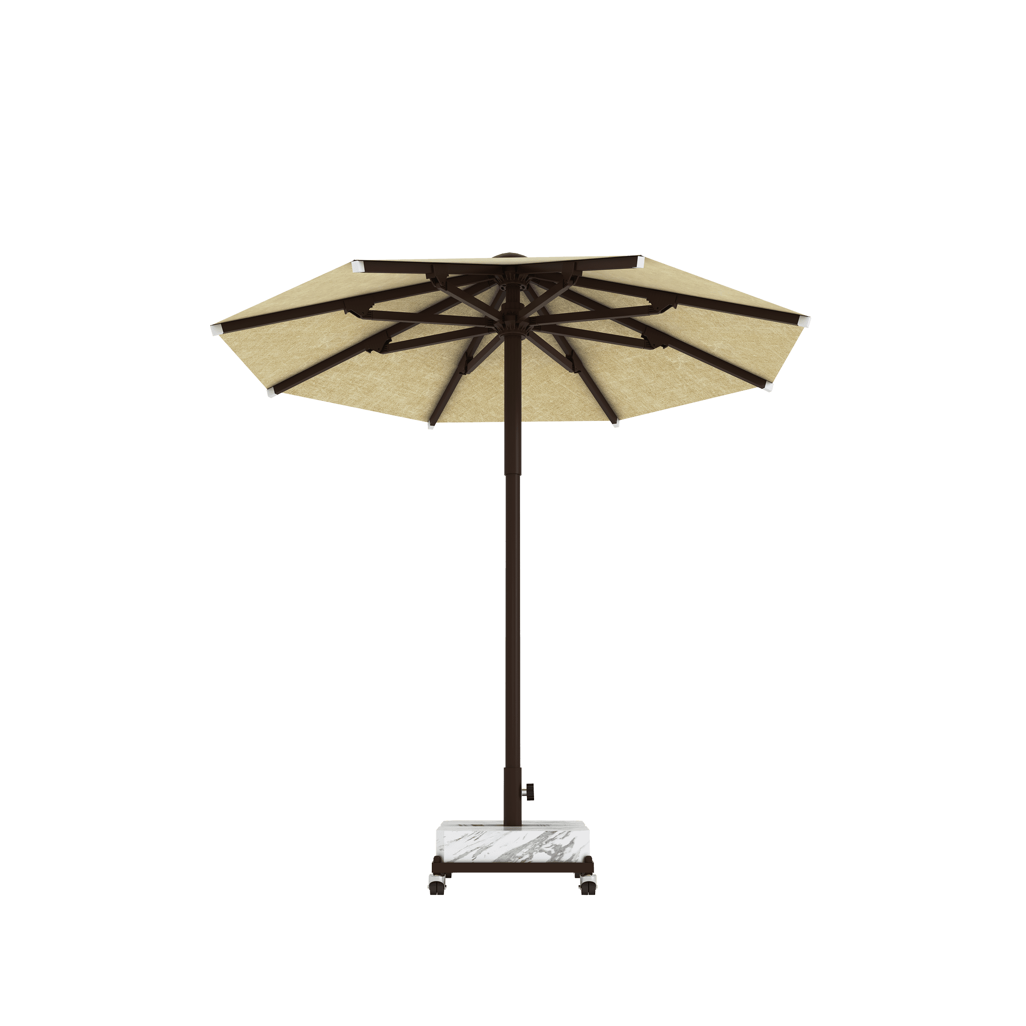 Hem şemsiye borusu hem de şemsiye kolları, termik ısıl işlemden geçirilerek korozyona ve rüzgara karşı ekstra direnç kazanmıştır. Kendi fabrikamızda enjeksiyonla üretilen güçlü plastik parçaları, şemsiyenin yoğun şartlarda yıllarca kullanılabilmesini garantiler.
