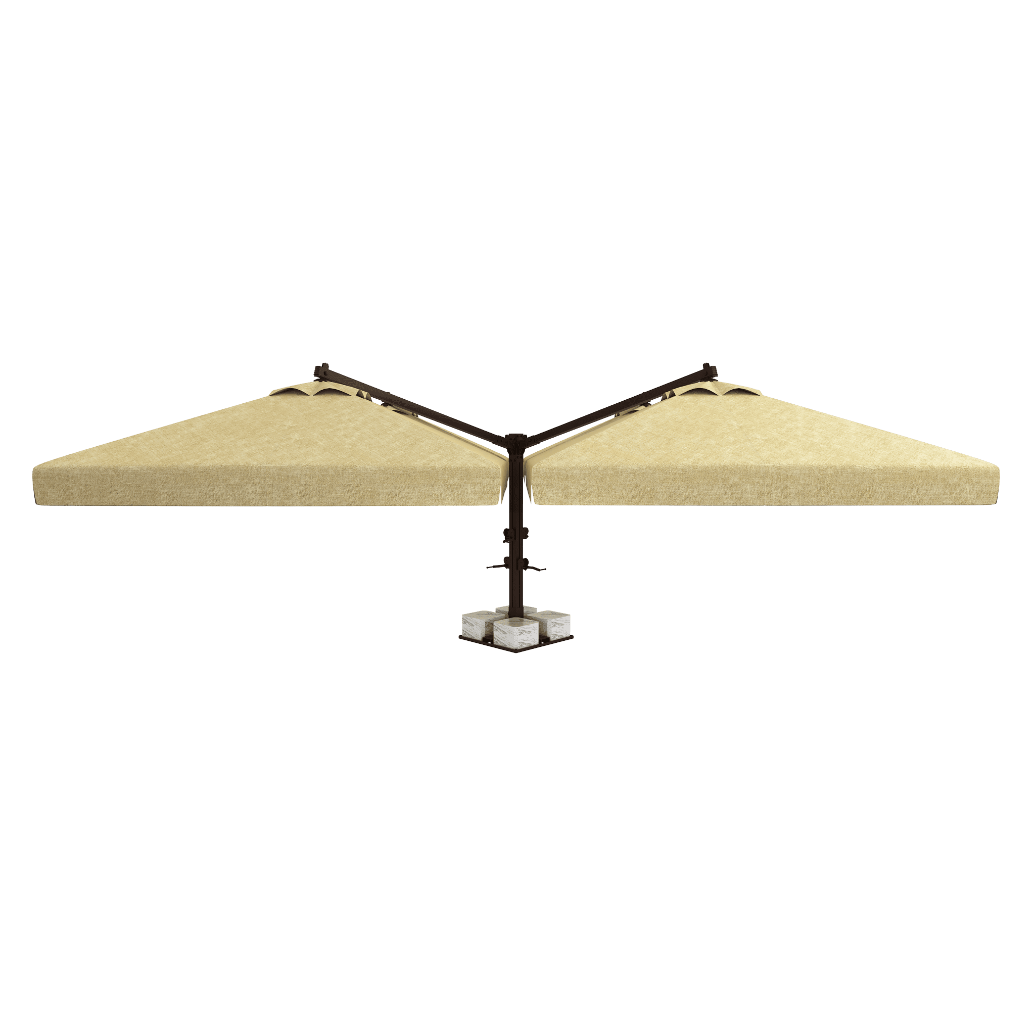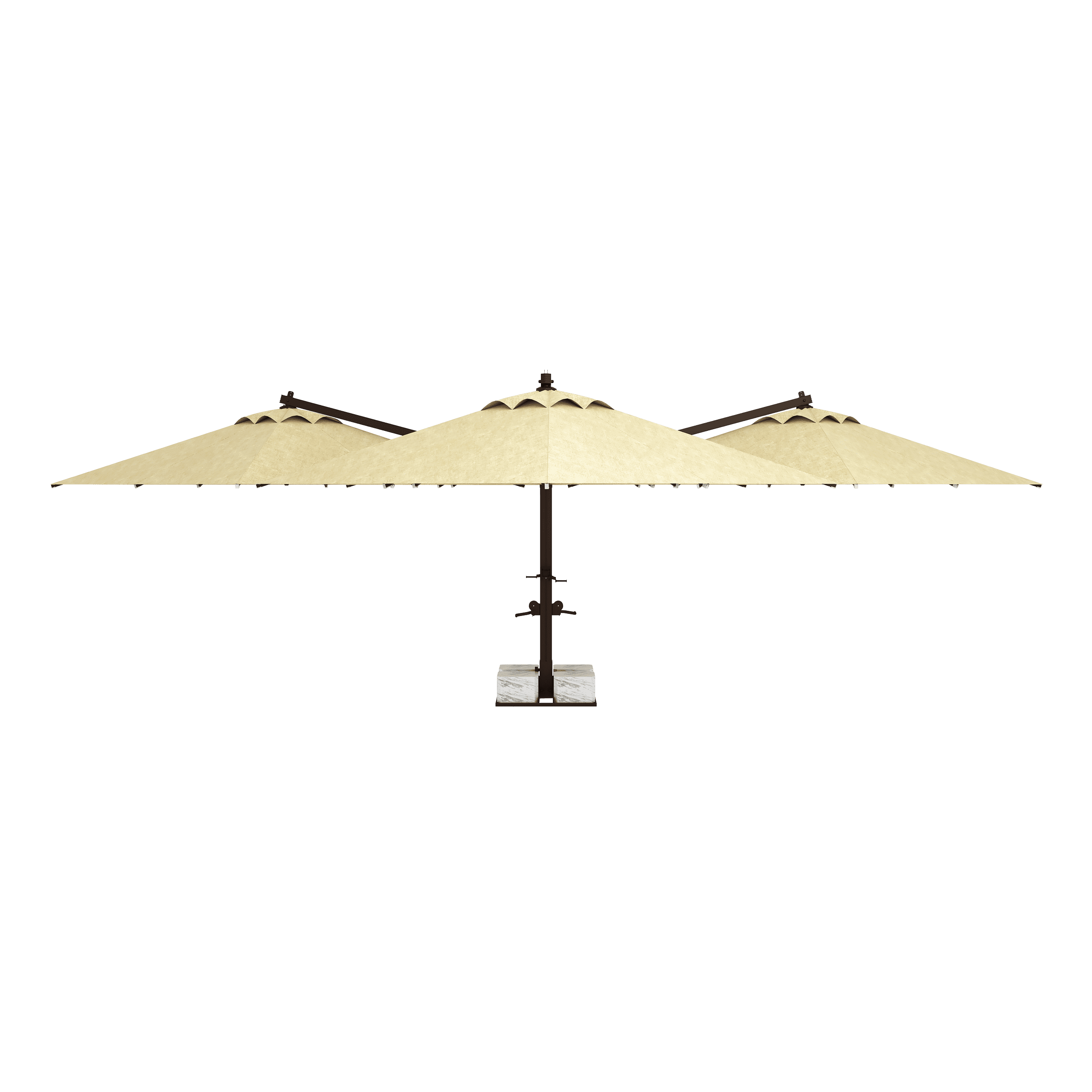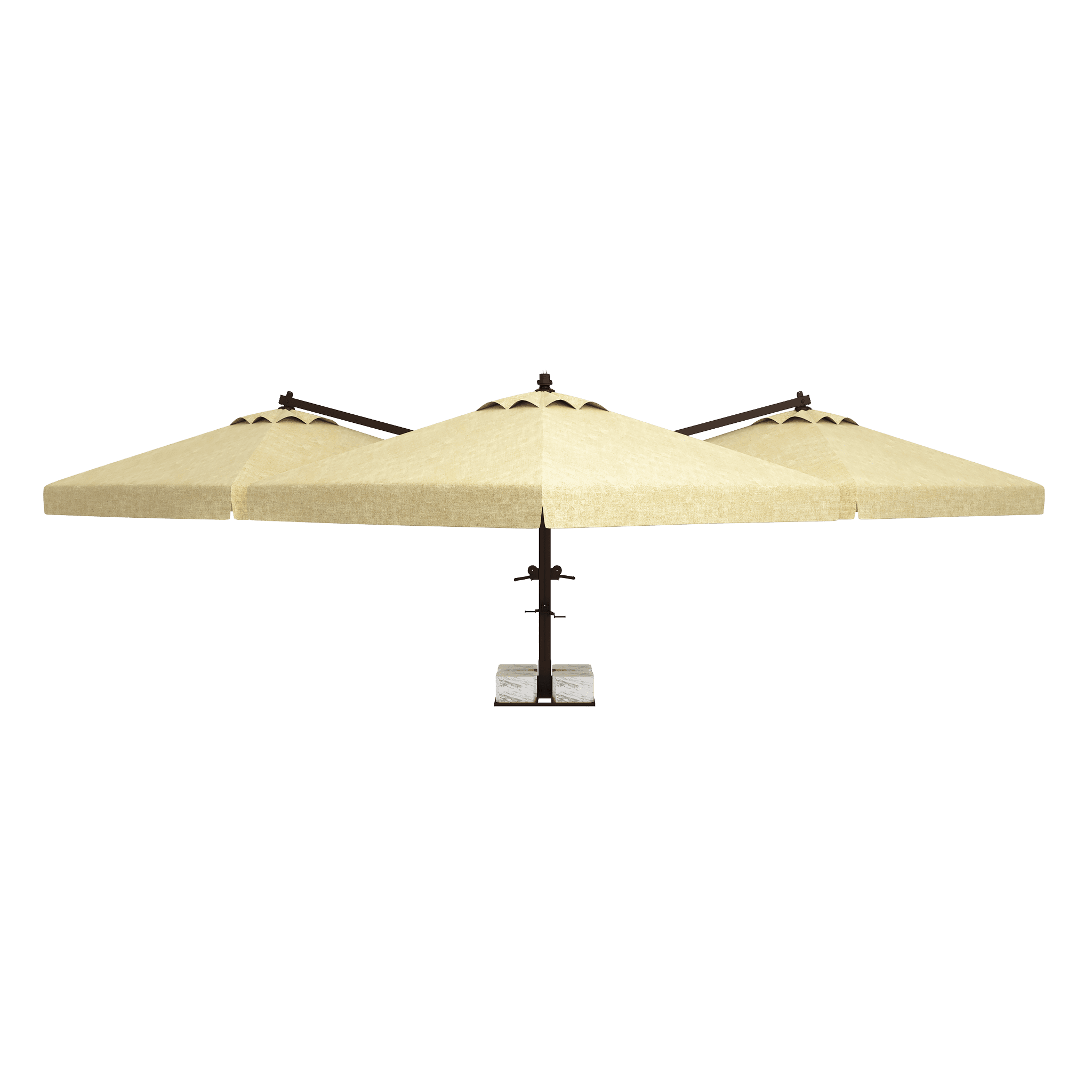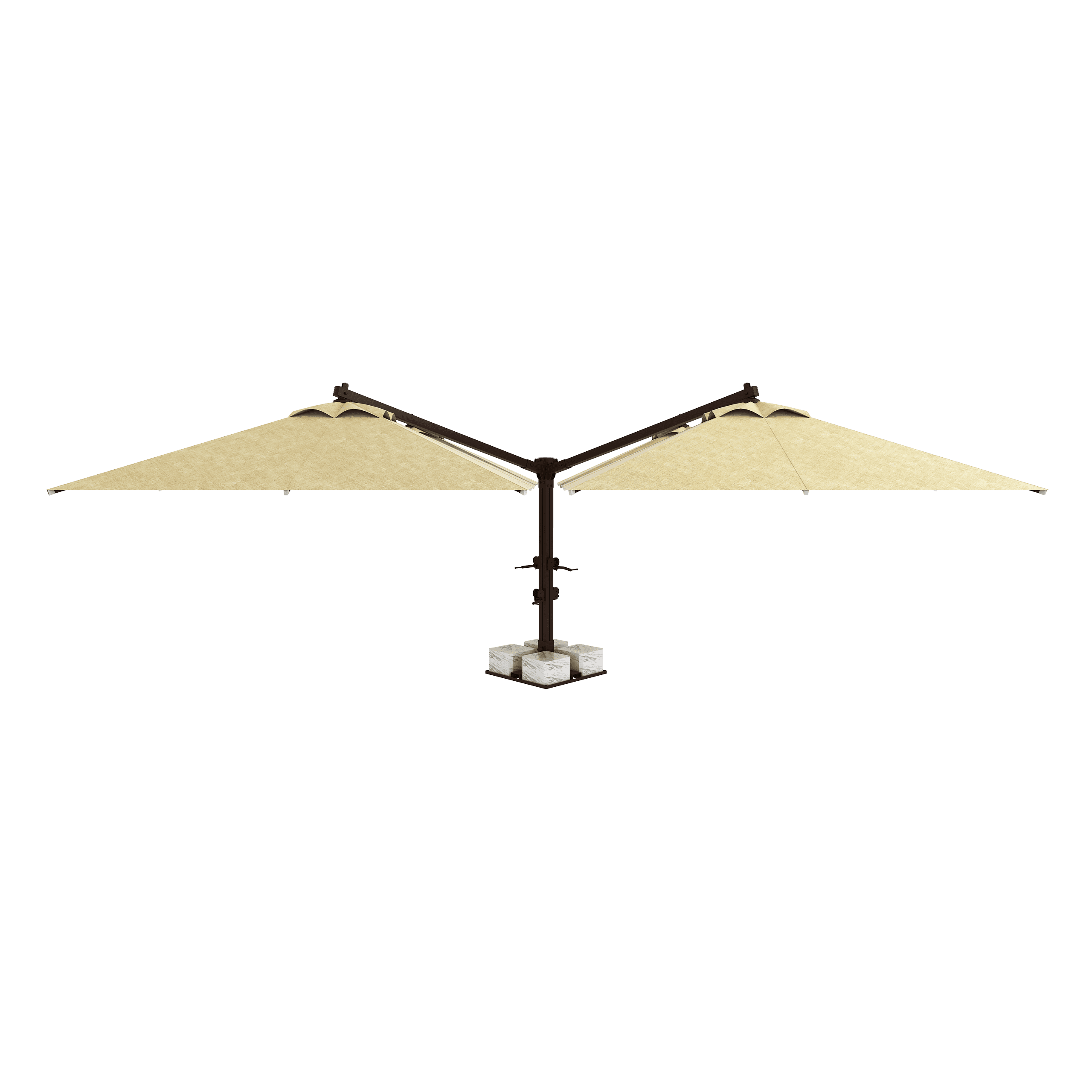 Normal şartlarda 4 farklı şemsiyenin yaratacağı ayak ve direk kalabalığını tamamen ortadan kaldırır. Tek bir merkezi direk sayesinde altında kalan tüm masalar ve sandalyeler kesintisiz bir yerleşim alanına sahip olur. Alan verimliliği arayan işletmeler için kusursuzdur.