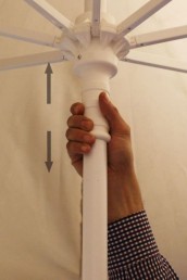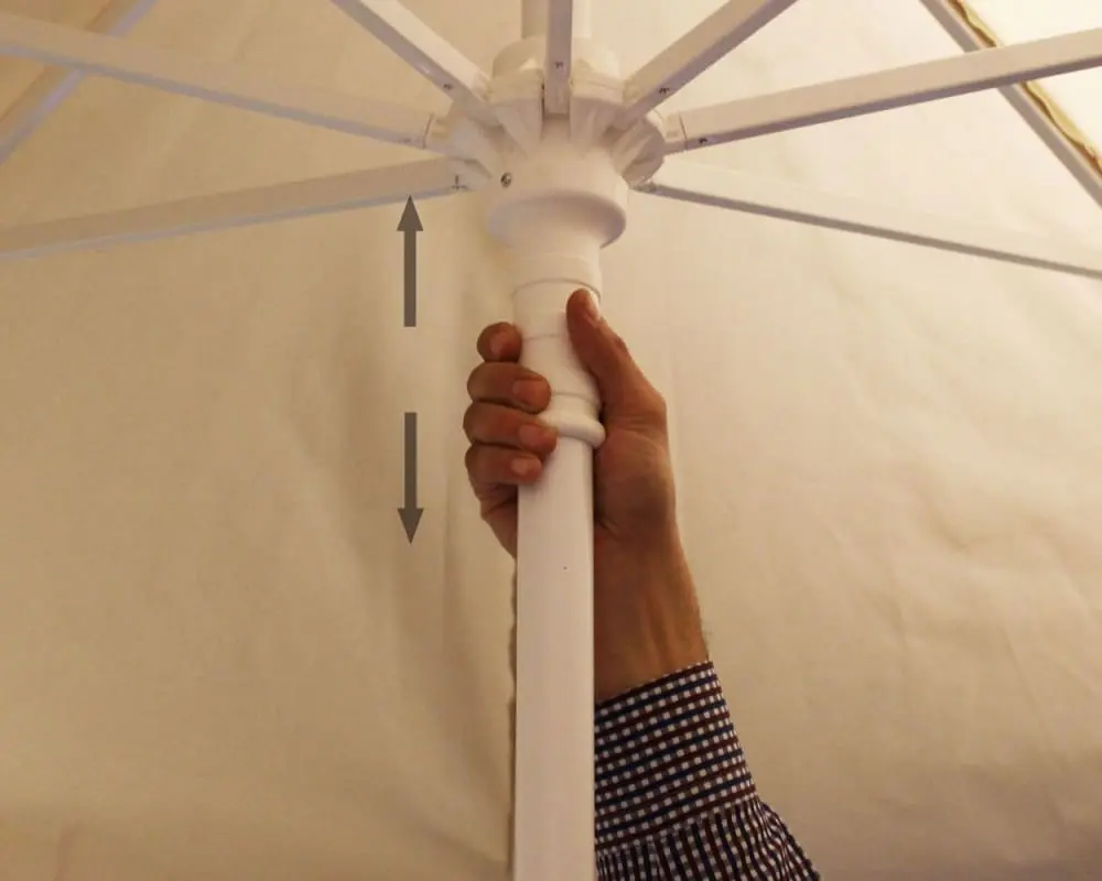El şemsiyelerine benzeyen ancak daha dayanıklı bir mantıkla çalışan bu sistemde, orta borudaki plastik gövdeyi yukarı itmeniz yeterlidir. Kumaşın kendi esnekliği ve gerginliği şemsiyeyi açık konumda sabitler. Aşağı doğru çekerek saniyeler içinde kapatabilirsiniz.