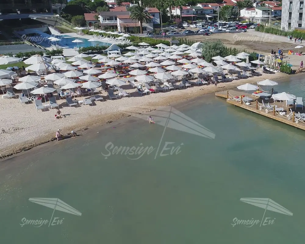 Güneşli ve rüzgarlı plaj şartlarına dayanabilmesi için alüminyum iskelet ve fabrikamızda özel olarak üretilen güçlü plastik bağlantı ekipmanları kullanılmıştır. Teras ve balkonlarda bile yıllarca ilk günkü sağlamlığını korur.