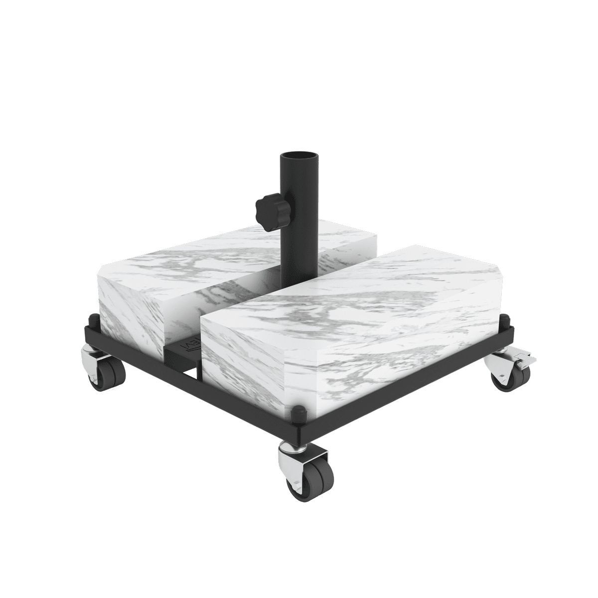 Mermer ağırlıklı, tekerlekli ve frenli yapısı ile hem şık hem mobil şemsiye ayağı.