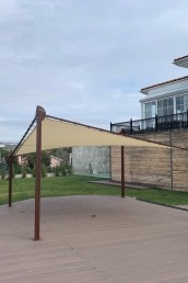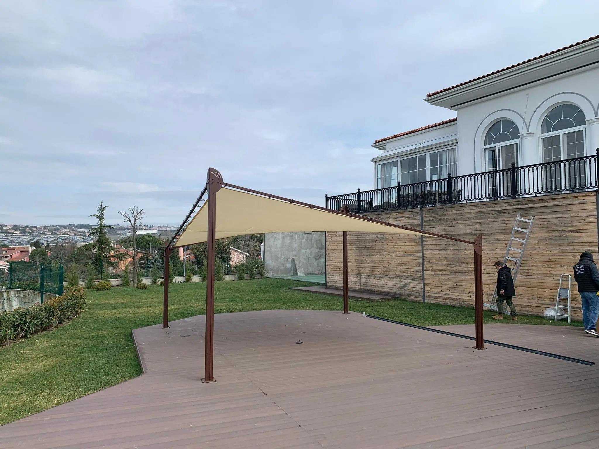 Standart gölgelendirme sistemlerinin dışına çıkarak, alanınıza modern ve mimari bir membran dokunuşu katar. İşletmenizin prestijini artıran, dikkat çekici ve estetik bir forma sahiptir.