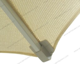Şemsiyelik yerli kumaşlar, polyester iplikten üretilmiş şemsiyelik kumaş kullanıma uygun döşemelik kumaşlardır. Bu kumaşlar; bahçe şemsiyesi, havuz şemsiyesi, restoran şemsiyesi, promosyon şemsiyesi gibi farklı model ve içerikteki şemsiyelere uygun kumaşlardır. Şemsiye Evi markası olarak polyester şemsiyelik kumaşlarda özellik krem, bej renklerini şemsiye müşterilerimize tavsiye etmekteyiz. Bunun nedeni; şemsiyelik polyester kumaşları muhteviyatı gereği renk haslıklarının düşük olması ve yoğun güneş ışınları altında şemsiyelik kumaşın rengini koruyamamasıdır. Kısa vadeli yada promosyon amaçlı kullanımlara çok daha uygun olan polyester şemsiyelik kumaşlar, dönemlik konsept değişikliğine sıkça giden firmalar tarafından da aktif olarak kullanılmaktadır.